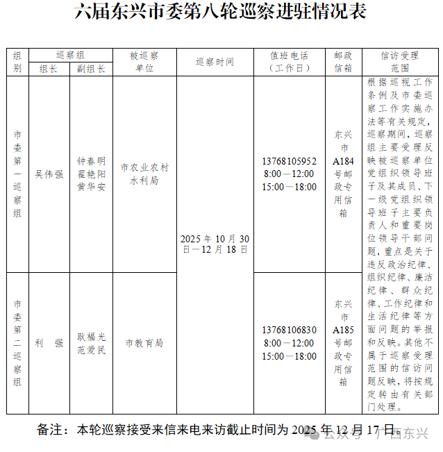 六届东兴市委第七轮巡察全部完成进驻