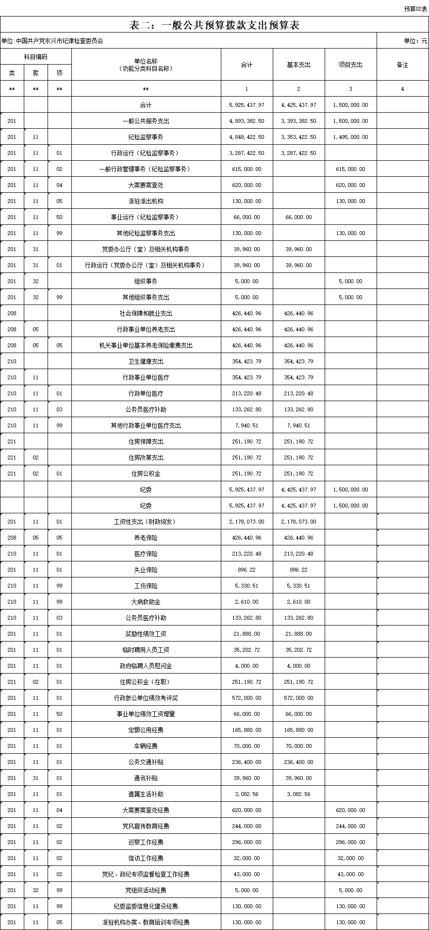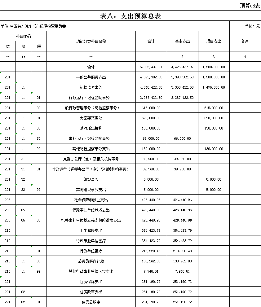 第二部分:中共东兴市纪委监委2021年部门预算报表