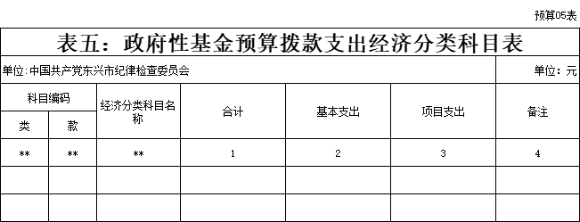 五、政府性基金预算拨款经济分类表