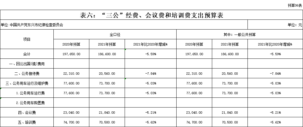六、三公经费、会议费、培训费表