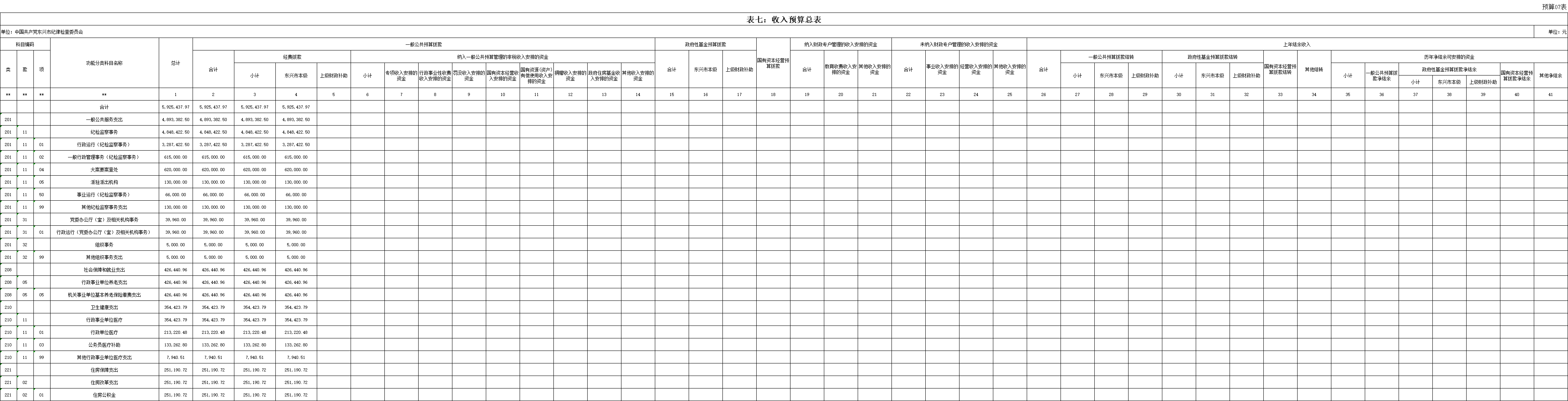 七、部门收入预算总表