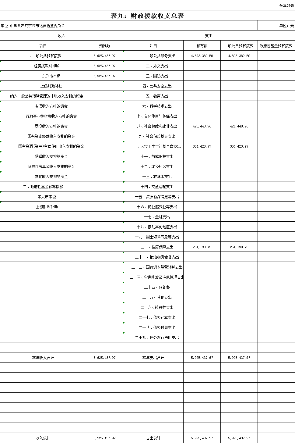 九、财政拨款收支表