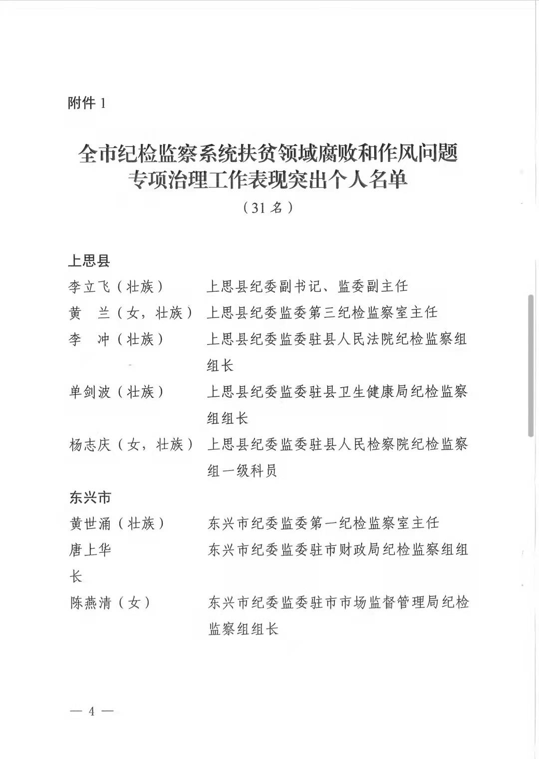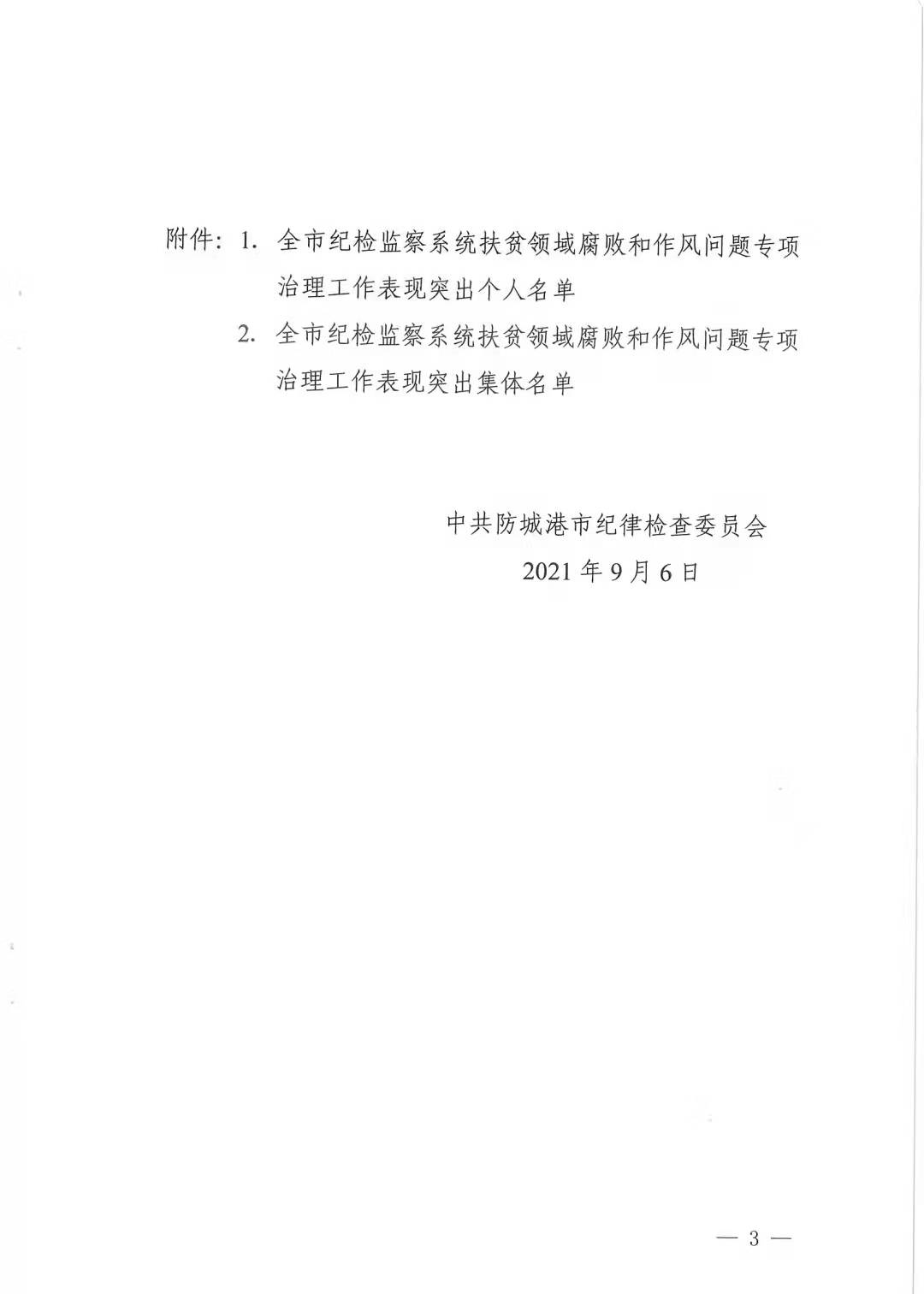 东兴市共有3名个人、3个集体在扶贫领域腐败和作风问题专项治理工作中表现突出获防城港市纪委通报表扬