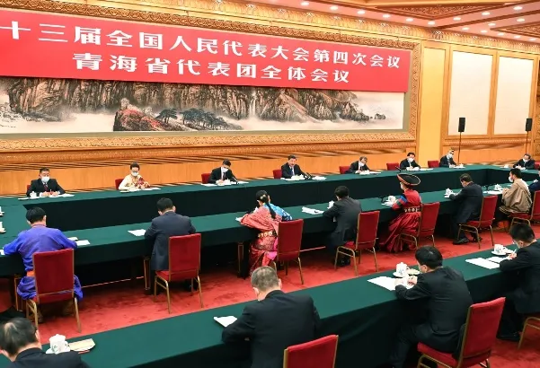 在认真听取代表发言后,习近平作了讲话。习近平充分肯定青海一年来工作和“十三五”时期发展,希望青海的同志全面贯彻落实党中央决策部署,完整、准确、全面贯彻新发展理念,坚持以人民为中心,坚持稳中求进工作总基调,持续深化改革开放,统筹发展和安全,弘扬光荣传统和奋斗精神,把坚持生态优先、推动高质量发展、创造高品质生活部署落到实处,在推动青藏高原生态保护和可持续发展上不断取得新成就,书写新时代青海新篇章。