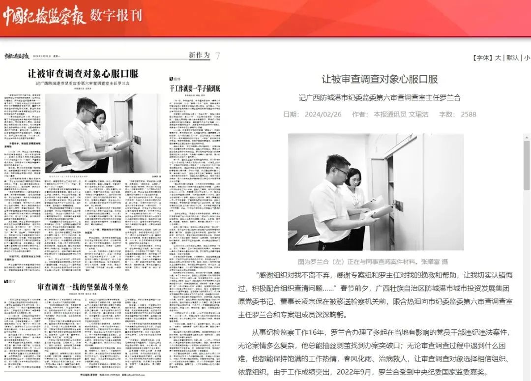 中国纪检监察报|让被审查调查对象心服口服 记广西防城港市纪委监委第六审查调查室主任罗兰合