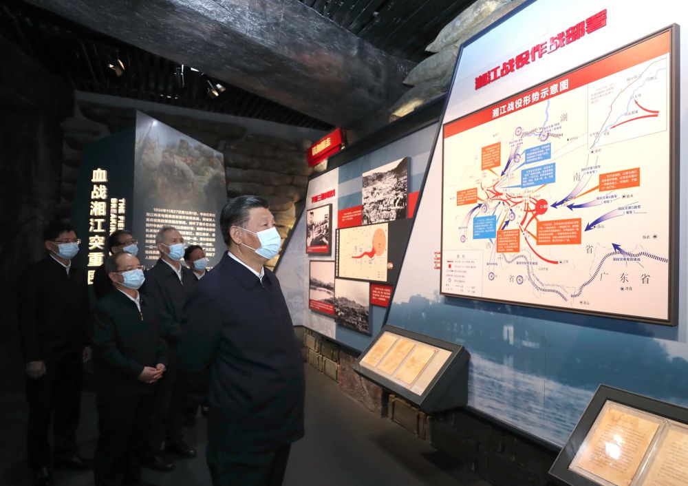 【习近平谈湘江战役:中国革命成功的奥秘就是靠理想信念】25日上午,正在广西考察调研的习近平总书记,来到位于桂林市全州县才湾镇的红军长征湘江战役纪念园,向湘江战役红军烈士敬献花篮,并参观红军长征湘江战役纪念馆。他指出,湘江战役是红军长征的壮烈一战,是决定中国革命生死存亡的重要历史事件。红军将士视死如归、向死而生、一往无前,靠的是理想信念。为什么中国革命能成功?奥秘就是革命理想高于天,在最困难的时候坚持下去,这样才能不断取得奇迹般的胜利。我们对实现下一个百年奋斗目标、实现中华民族伟大复兴就应该抱有这样的必胜信念。困难再大,想想红军长征,想想湘江血战。
