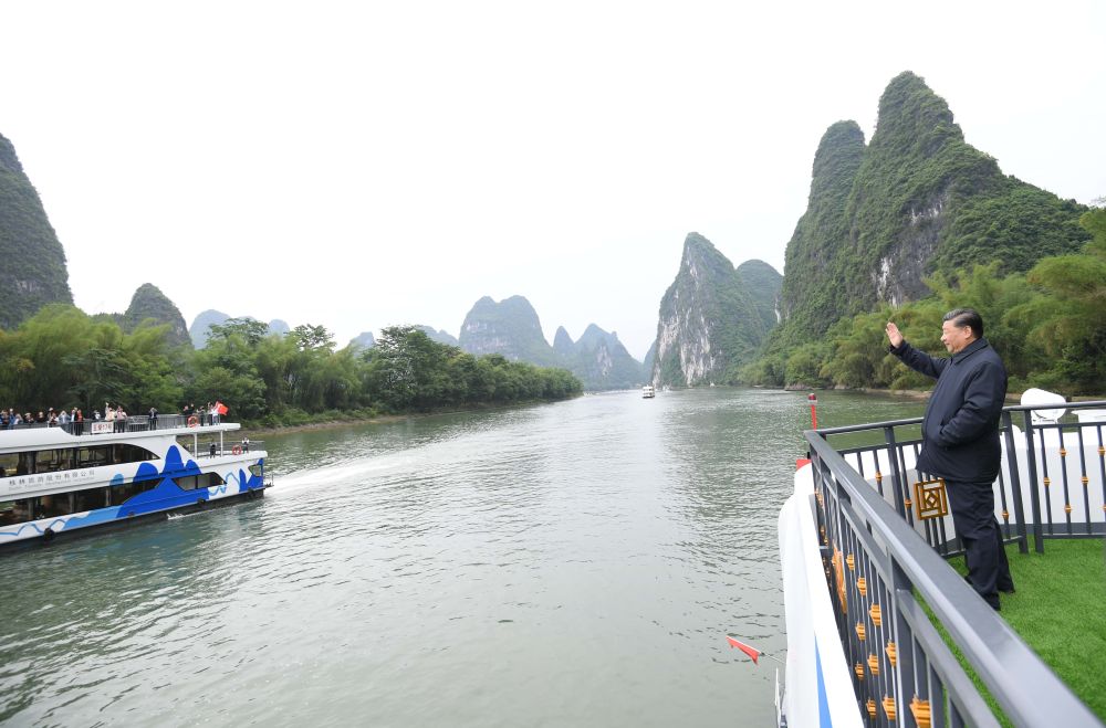 【习近平谈漓江流域综合治理:千万不要破坏生态环境】25日下午,正在广西考察调研的习近平总书记,来到桂林市阳朔县漓江杨堤码头,听取漓江流域综合治理、生态保护等情况汇报。当地负责同志告诉总书记,近年来桂林市大力推进漓江“治乱、治水、治山、治本”,全面清理整治采石场、非法采砂等。习近平指出,最糟糕的就是采石。毁掉一座山就永远少了这样一座山。全中国、全世界就这么个宝贝,千万不要破坏。再滥采乱挖不仅要问责,还要依法追究刑事责任。