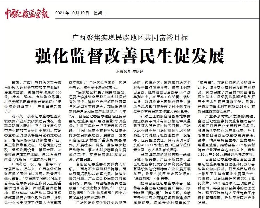 中国纪检监察报 | 广西聚焦实现民族地区共同富裕目标 强化监督改善民生促发展
